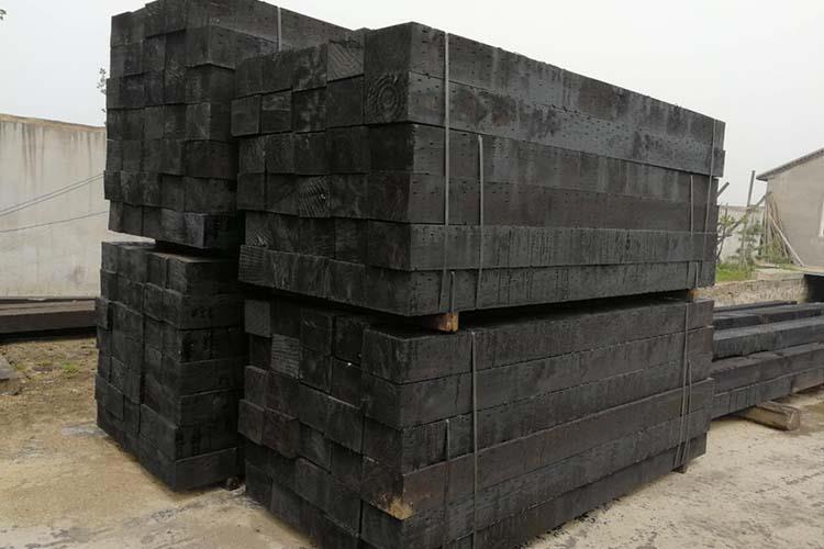防腐枕木90%是用松木加工而成,松木產量大,密度高,使用年限長,我公司通過高壓油倉注油處理大大提高了枕木的使用壽命,經過油浸處理起到了防潮,防腐的作用。